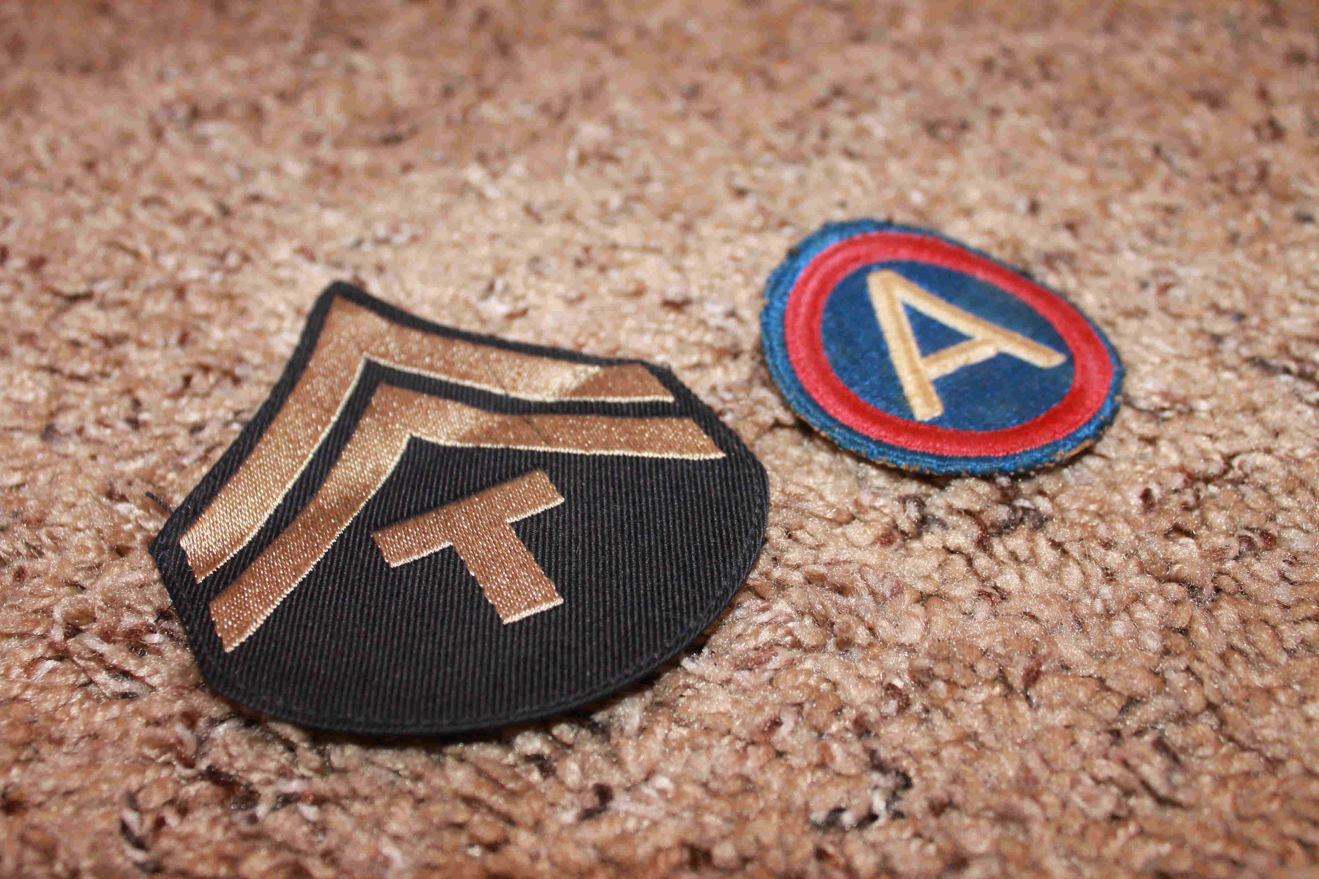 Photos: Top - Arthur's grave. Bottom - Patches of 3rd Army and T5 rank