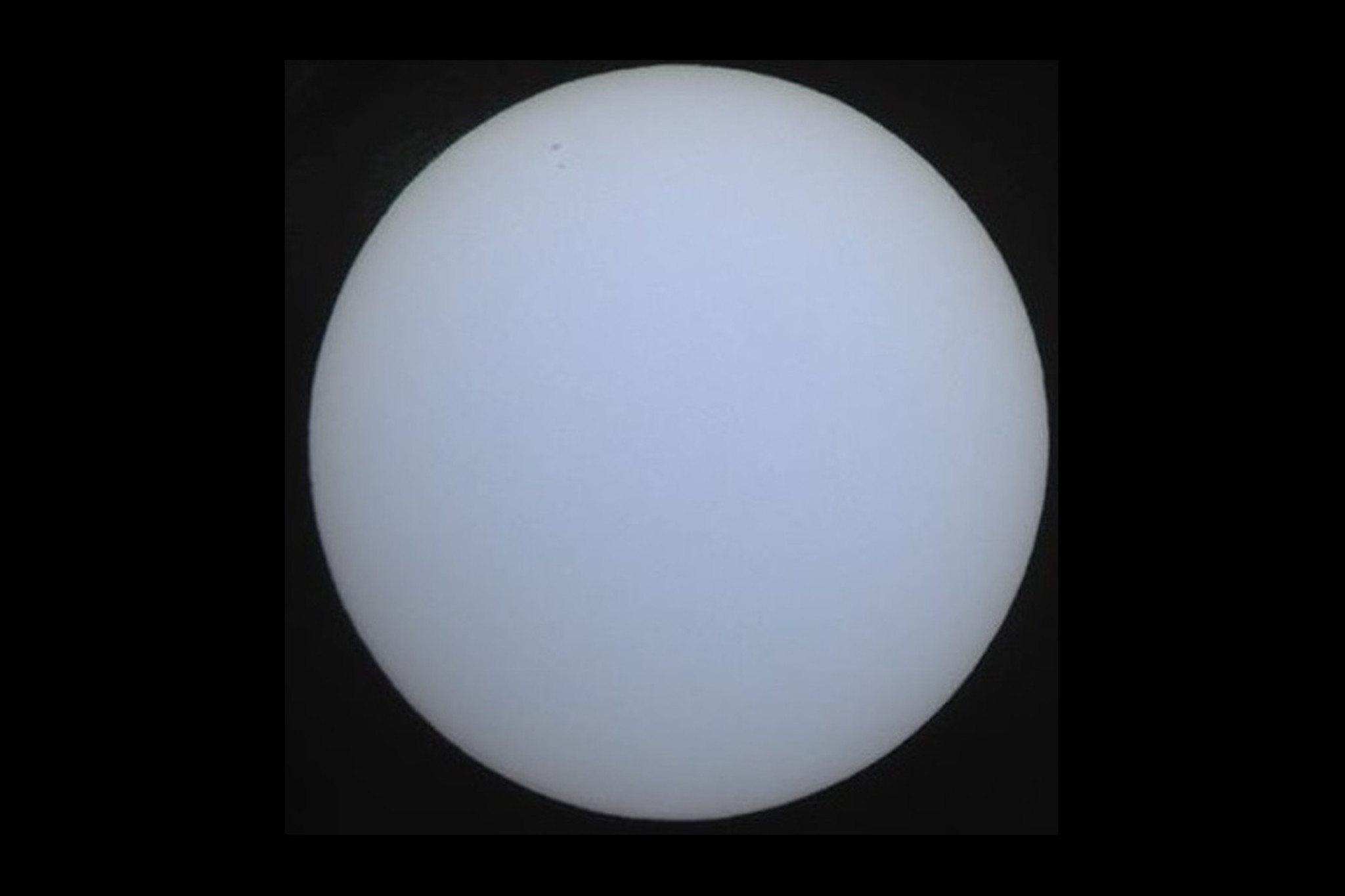 The sun is our local space heater. The hottest and brightest object in our entire solar system, the Sun warms our atmosphere to conditions just right to sustain life. I only recently began imaging our star, and have found it to be pretty exciting. My intial thought when viewing the Sun for the first time was that it looked exactly like a white jawbreaker. The edge of it's atmosphere was so clearly defined. Seeing sunspots is very cool, and they are always changing. I hope one day to own a solar telescope so I'm able to see solar flares and things of that nature. The Sun appears white through my filter; the image on top was modified using false color.